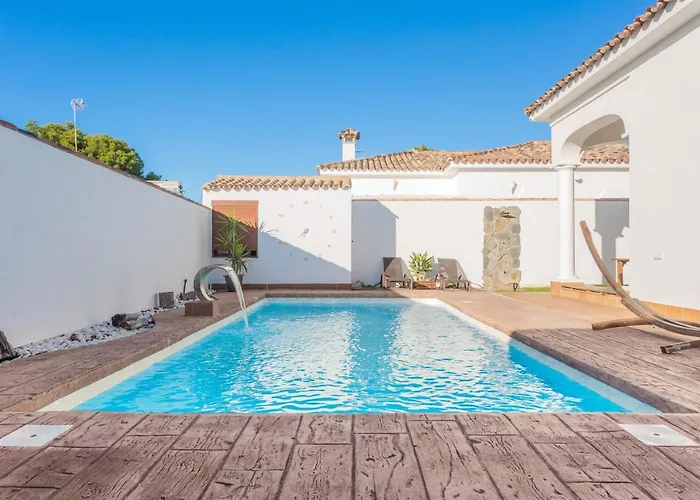 La Villa De Lujo Climatizada. Piscina Y Jardin Privado Chiclana de la Frontera ofrece a sus huéspedes depósito de equipajes, y está situada a 3 km de lugares de culto como el Convento de Jesús Nazareno. Situada a unos 10 minutos en coche de la Playa de La Barrosa, la villa cuenta con una terraza con vistas al jardín.